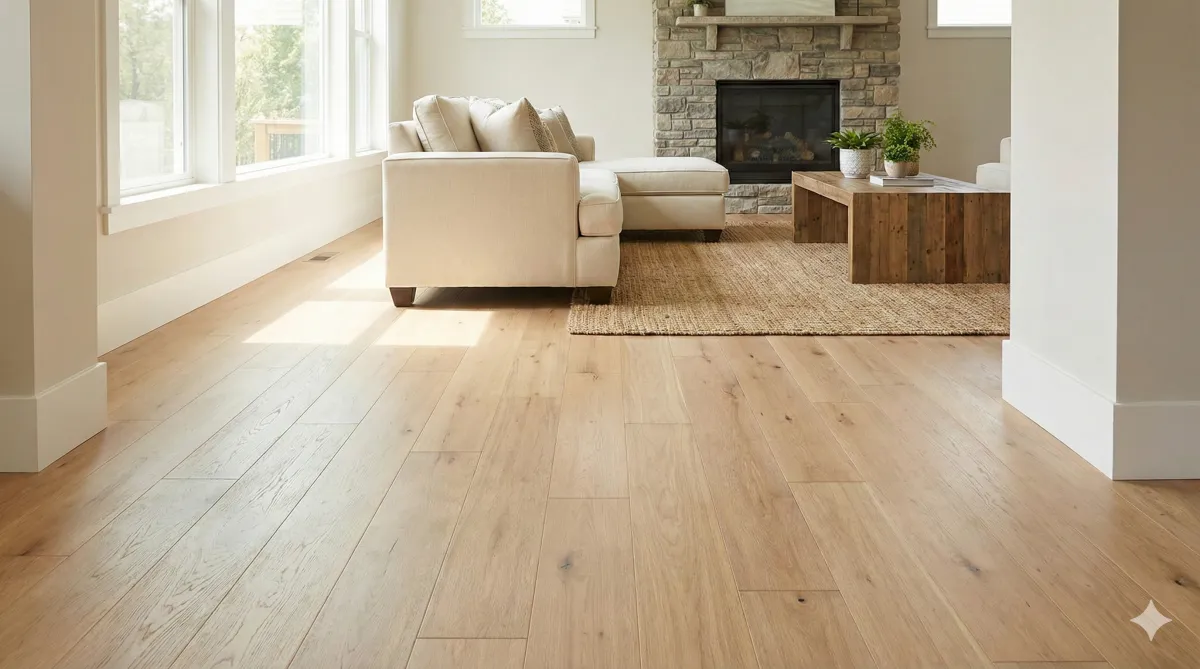 Full hardwood flooring installation completed with careful preparation, tight seams, and a smooth, consistent finish throughout the home.