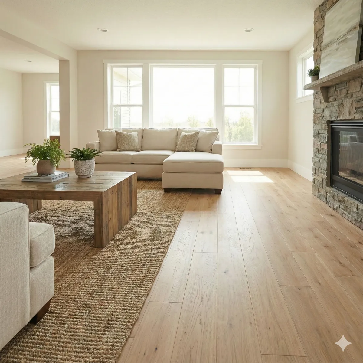 When the homeowners reached out, the existing flooring throughout the home was over 15 years old. The carpet had begun to wear unevenly, trap odors, and no longer fit the clean, open feel they wanted for their living space.